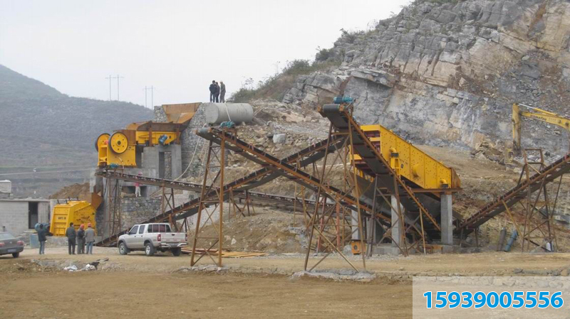 首先从山上爆破下来的石头通过喂料机均匀地喂入颚式破碎机初步破碎,经粗碎后的半成品通过皮带输送机输送至反击式破碎机进一步破碎,二次破碎后的石料通过皮带输送机输送至振动筛筛分出不同规格的石子,满足客户粒度要求的石子通过皮带输送机输送至成品料堆,大于上层筛网尺寸的石子通过皮带输送机重新返回至反击式破碎机再次破碎,形成闭路循环。